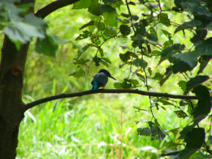 ビオトープに迷い込んだ小魚を狙ってたたずむ姿は精悍。 ※現在は見ることができません。
