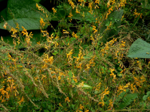 他のケマンと異なり草丈が高く花がまばらにしかつかない。 2014/12/02 ツルキケマン(ケシ)