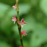 花穂を上から見ると赤く下から見ると白く見えることから紅白の「水引」。 2014/12/02 ミズヒキ(タデ)