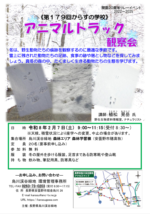 「アニマルトラック観察会」を下記のとおり開催いたします。