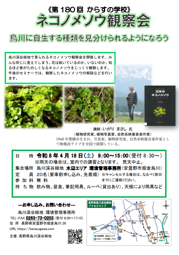 「ネコノメソウ観察会」を下記のとおり開催いたします。